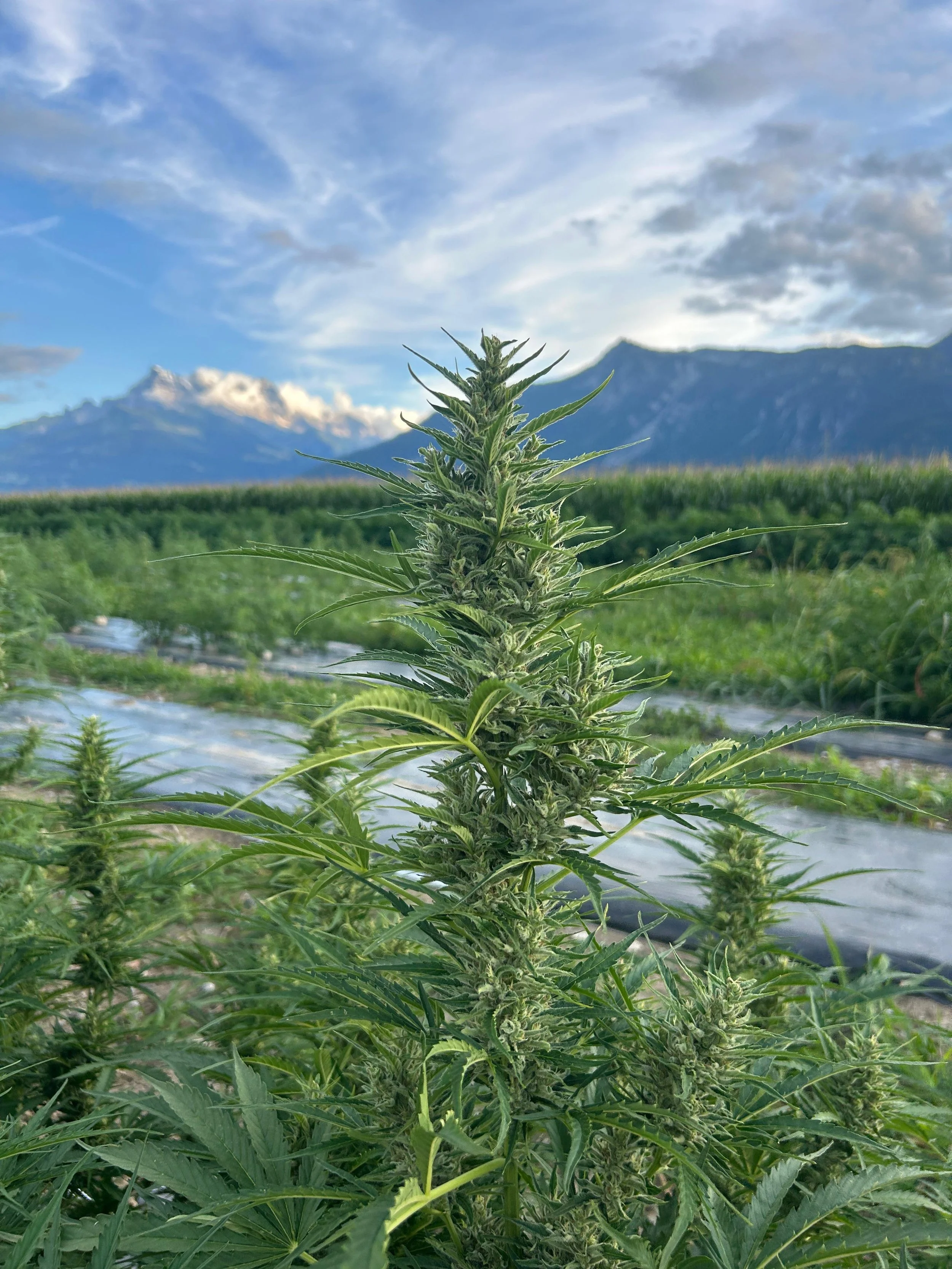 More than a cultivation site, our outdoor farm in Yvorne is a living ecosystem—where thriving cannabis plants grow in sync with their natural surroundings. With no artificial interference, each flower matures under the open sky, nourished by alpine rainwater and sun, absorbing the essence of its environment.